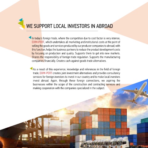 trade, EXIM-PORT creates joint investment alternatives and provides consultancy